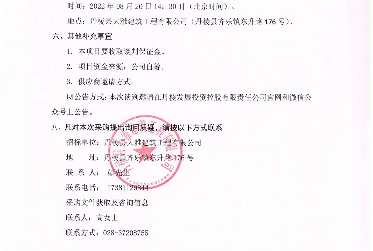 丹棱縣熊河碥片區(qū)市政基礎設施建設項目一期(城市雙修)設計施工總承包(EPC)衛(wèi)生間幕墻專業(yè)分包項目談判邀請公告