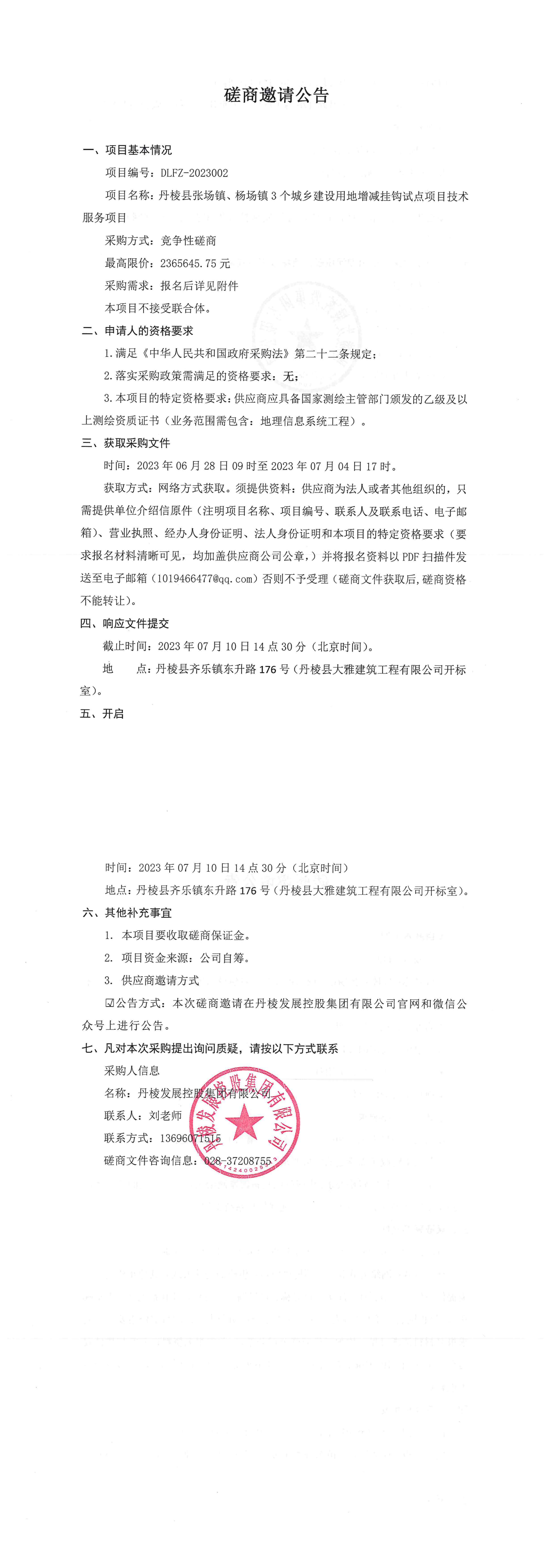 項目名稱:丹棱縣張場鎮(zhèn)、楊場鎮(zhèn)3個城鄉(xiāng)建設(shè)用地增減掛鉤試點項目技術(shù)服務(wù)項目磋商邀請公告