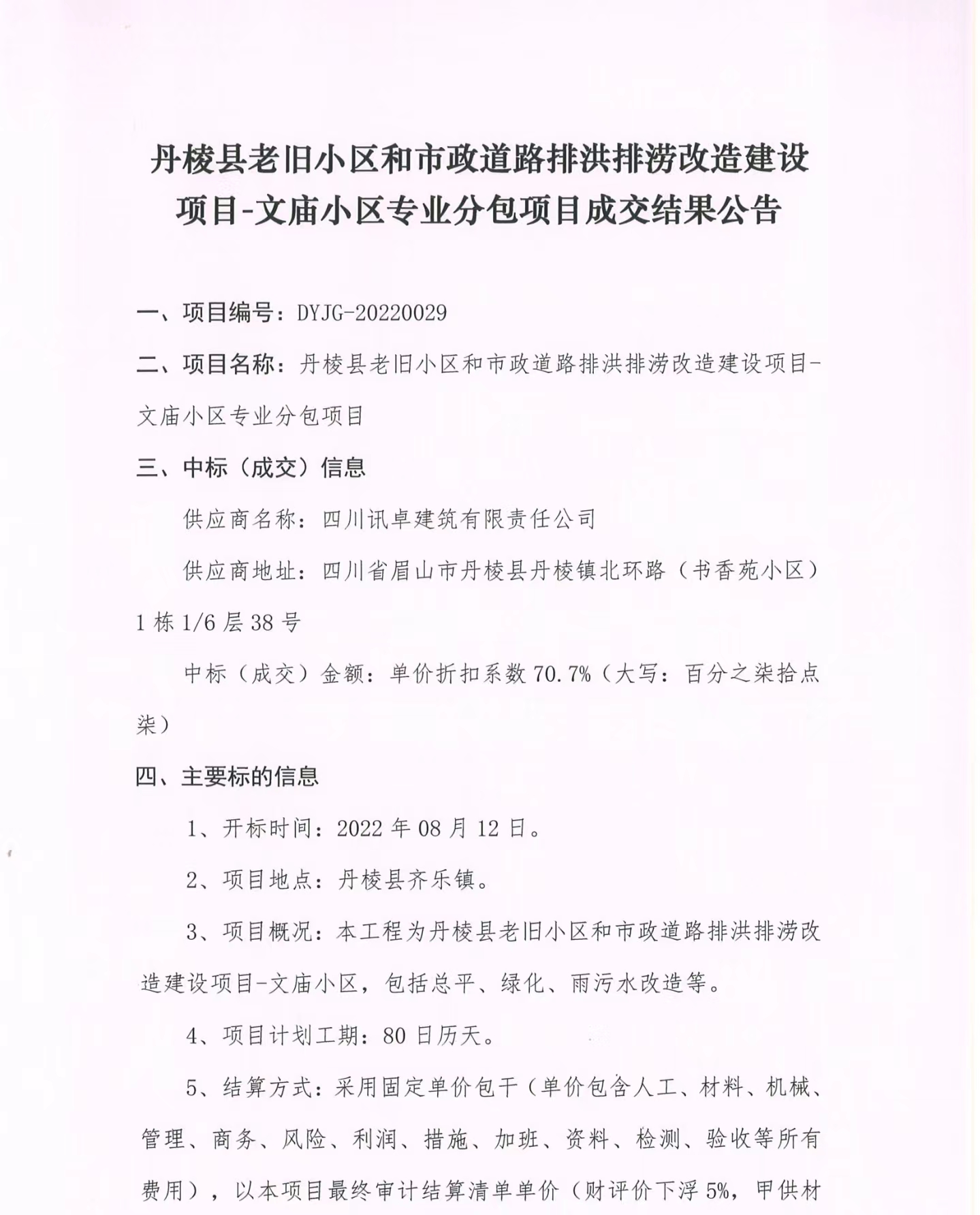 丹棱縣老舊小區(qū)和市政道路排洪排澇改造建設(shè)項(xiàng)目-文廟小區(qū)專(zhuān)業(yè)分包項(xiàng)目成交結(jié)果公告