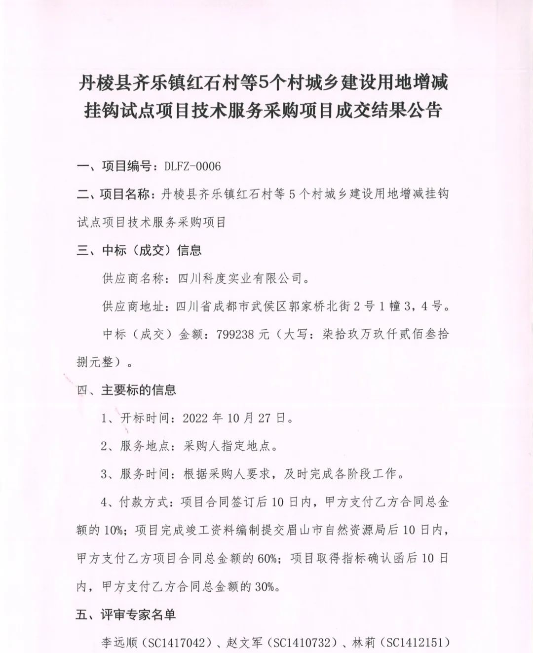 丹棱縣齊樂鎮(zhèn)紅石村等5個村城鄉(xiāng)建設(shè)用地增減掛鉤試點(diǎn)項(xiàng)目技術(shù)服務(wù)采購項(xiàng)目成交結(jié)果公告