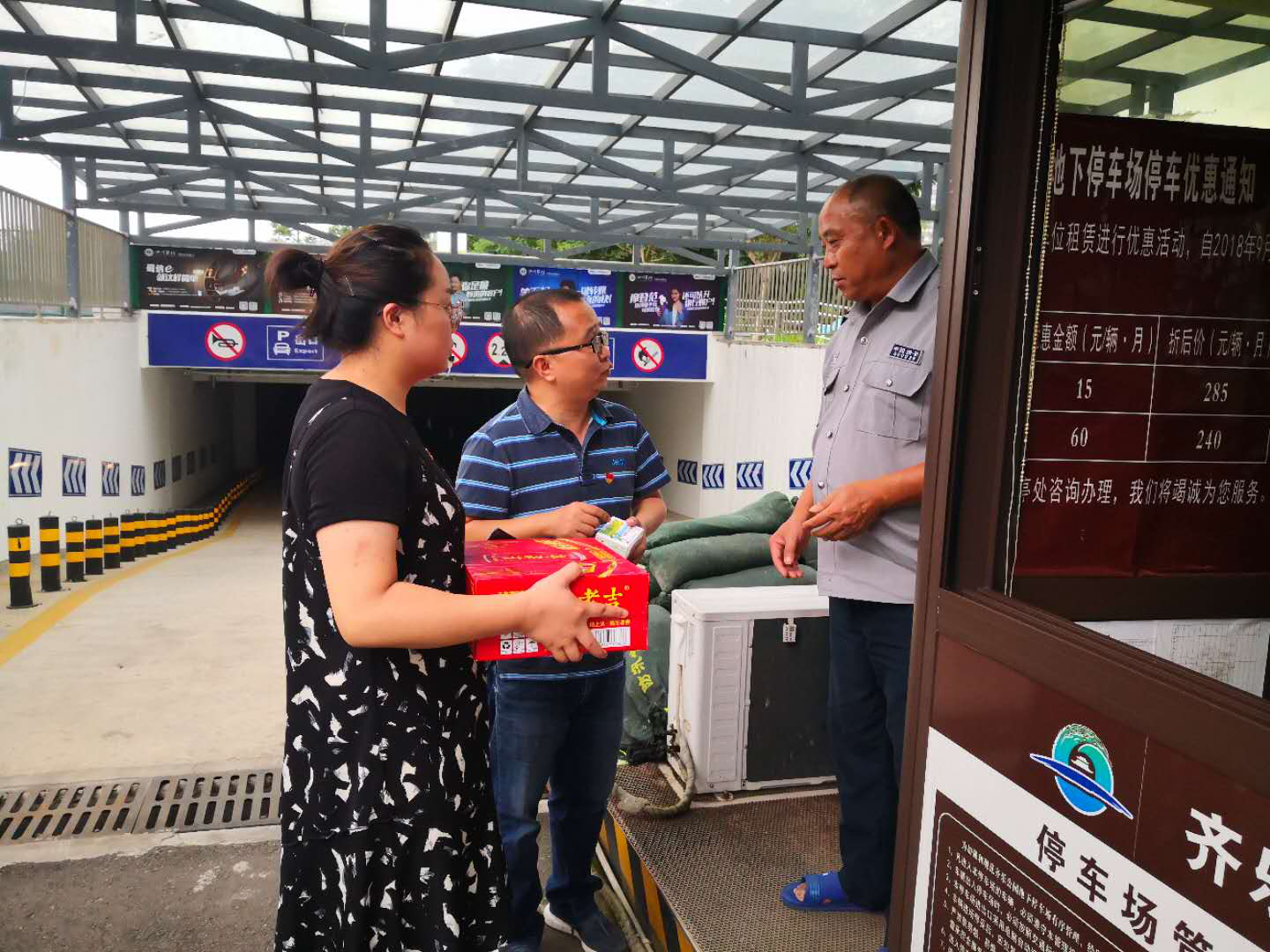 慰問(wèn)活動(dòng)由公司副總經(jīng)理熊鷹睿同志帶隊(duì),活動(dòng)中,丹發(fā)展工會(huì)為齊樂(lè)公園地下停車場(chǎng)、三余橋生活市場(chǎng)地下停車場(chǎng)全體一線職工發(fā)放清涼飲料,真誠(chéng)感謝一線職工不畏酷暑、堅(jiān)守崗位,叮囑他們要合理安排作息時(shí)間,注意勞逸結(jié)合,落實(shí)好各項(xiàng)防暑降溫措施,確保安全工作。