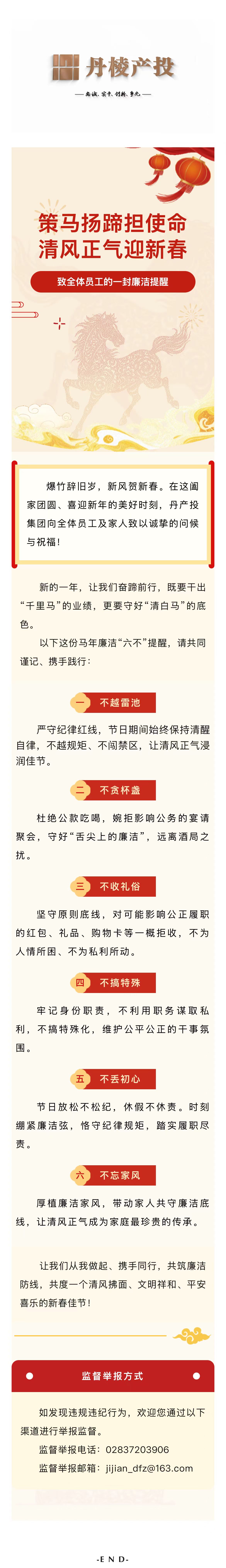 【節(jié)日紀語】策馬揚蹄擔(dān)使命 清風(fēng)正氣迎新春——致全體員工的一封廉潔提醒